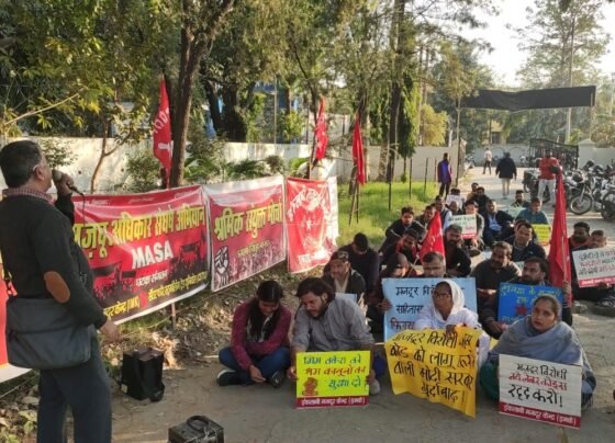 देश में मजदूर विरोधी चार श्रम संहिताओं को लागू करने के विरोध में श्रमिक संयुक्त मोर्चा का प्रदर्शन