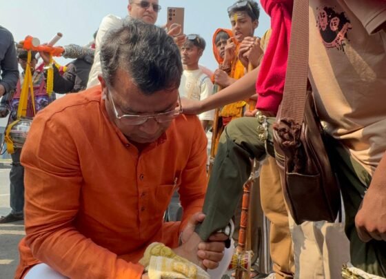 रुद्रपुर विधायक ने हरिद्वार से गंगाजल लेकर लौट रहे कावरियों के चरण धोकर किया स्वागत